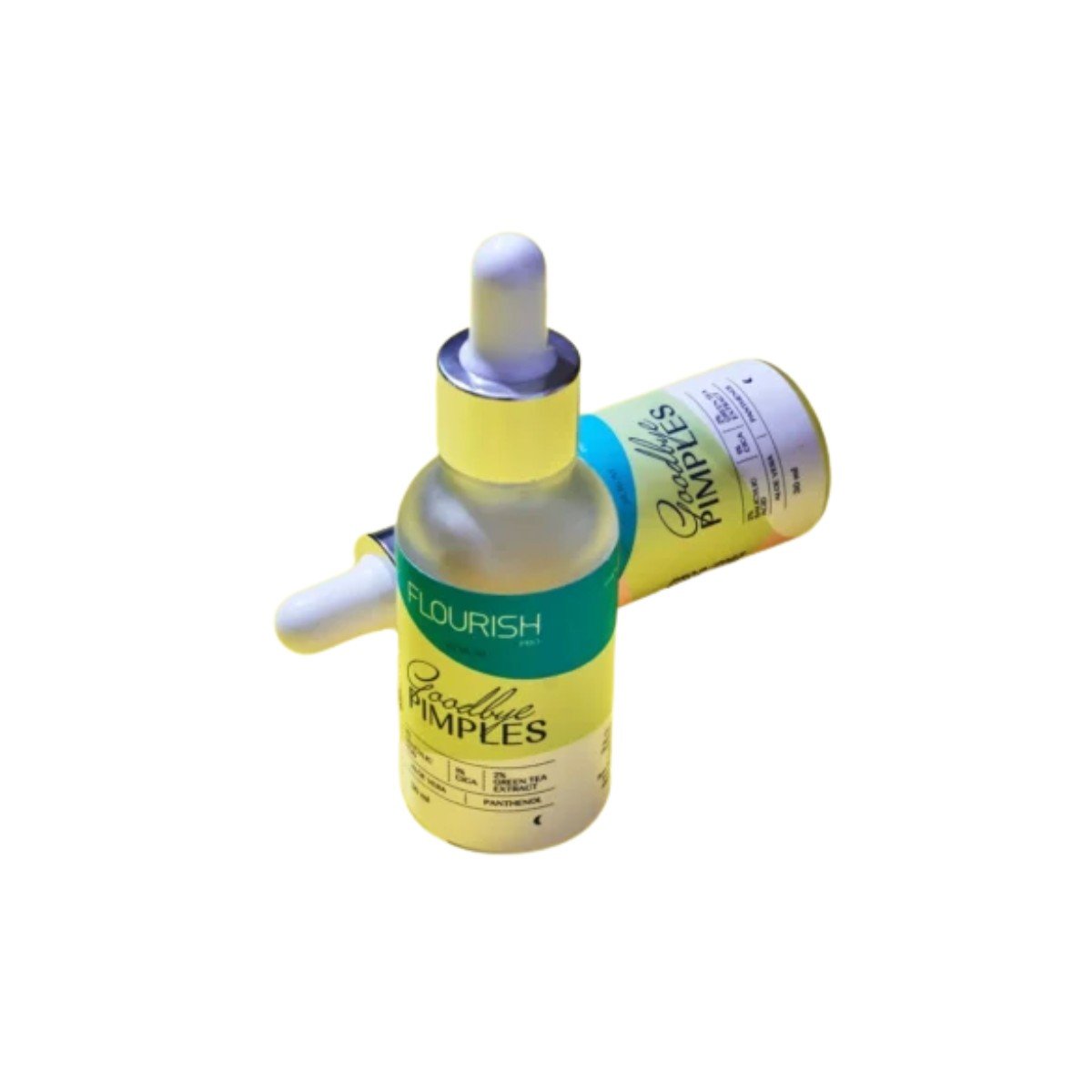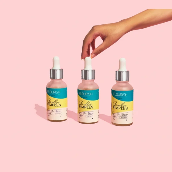 Flourish Goodbye Pimples Serum is formulated with a balanced concentration of Beta Hydroxy Acid and calming agents to exfoliate, unclog pores, and reveal clearer, healthier skin.